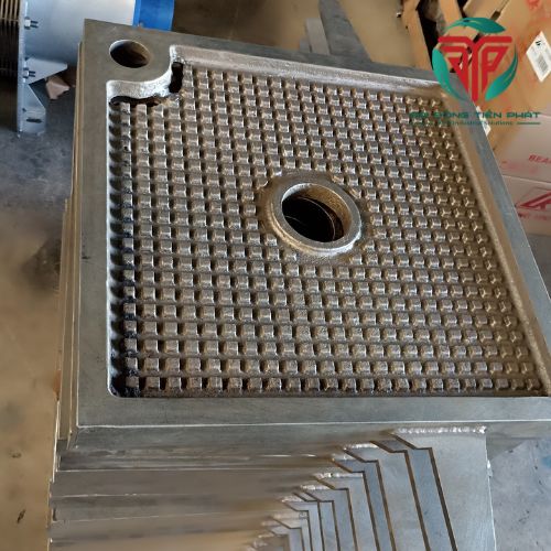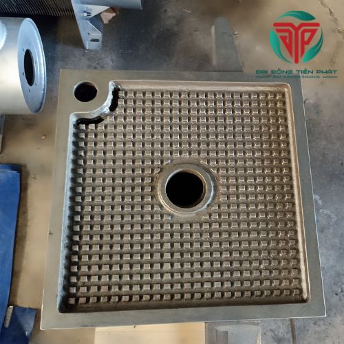 Trong cấu tạo máy ép bùn, tấm lọc khung bản đóng vai trò tạo buồng ép và chịu toàn bộ áp lực trong quá trình lọc. Khi bùn được bơm vào, tấm lọc kết hợp với vải lọc để giữ lại phần chất rắn và cho nước thoát ra ngoài.